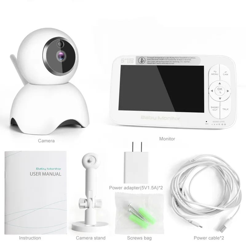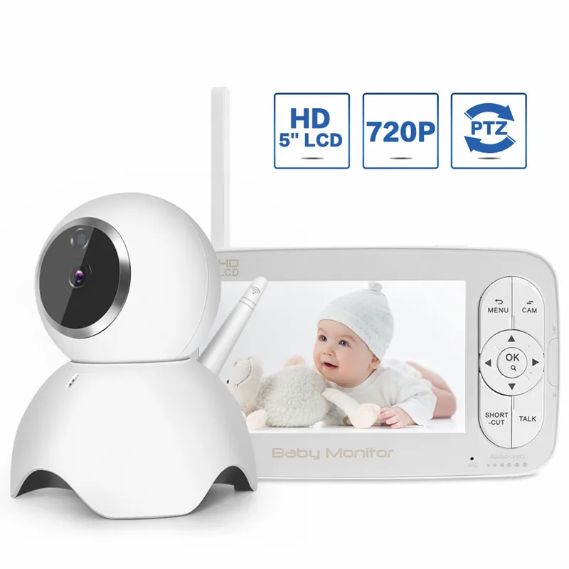 5 Inch HD LCD 720P Wireless Baby Monitor PTZ 360 Degree Zoomable Baby Camera Night Vision Babysitte