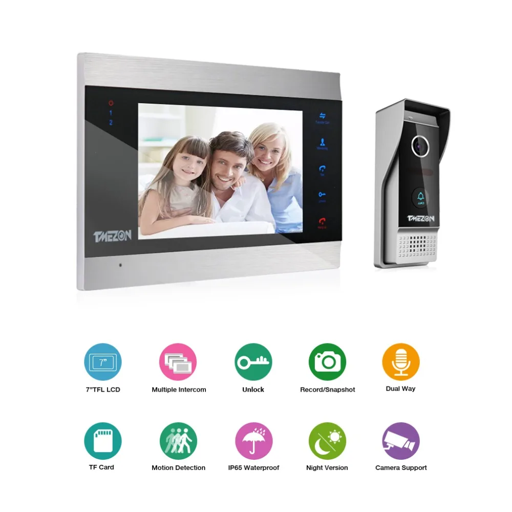 Review TMEZON 7 Inch TFT Wired Smart Video Doorbell Intercom System with 2 Night Vision Monitor + 1x1200TV