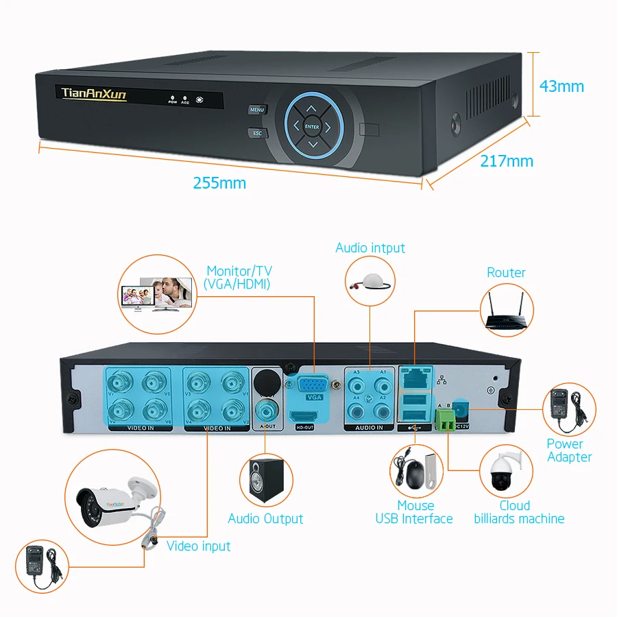 BEST QUALITY Tiananxun Video Surveillance Security Camera System 8CH CCTV Kit AHD Cameras DVR Set 720P Home Weat
