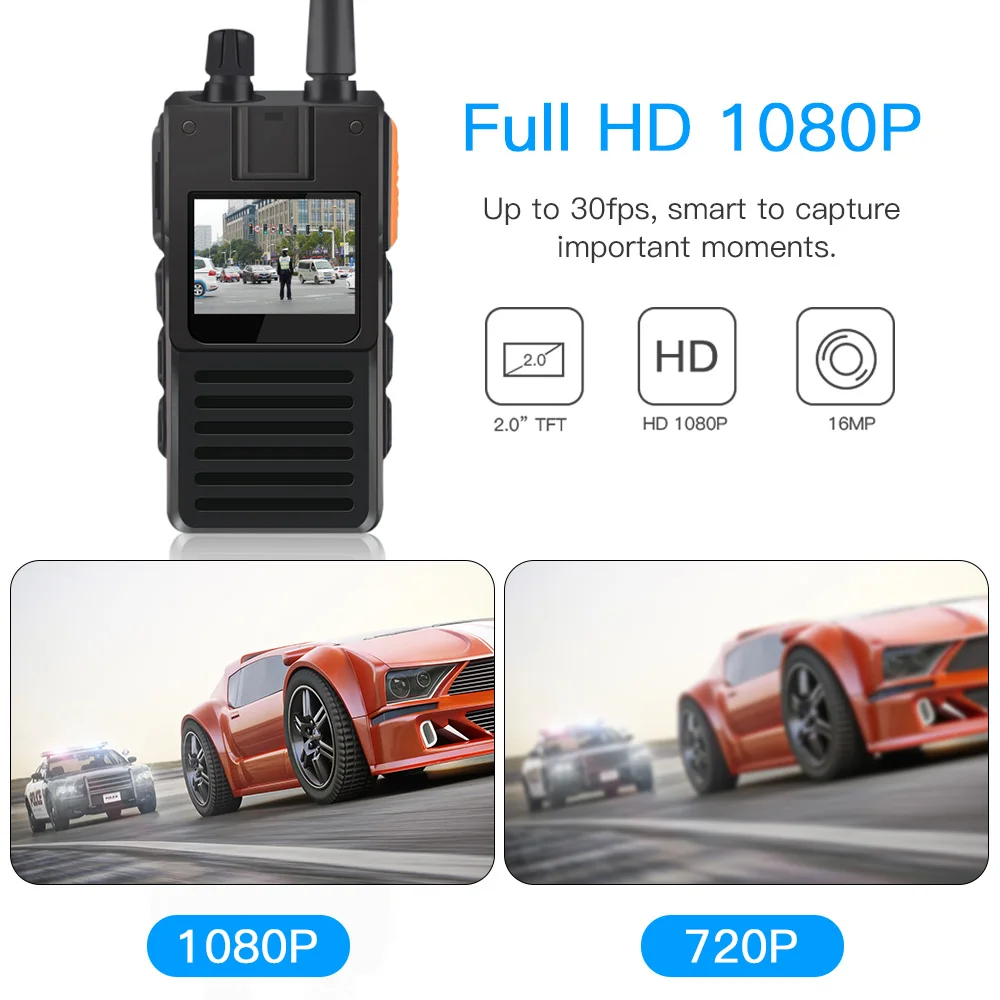 Police Body Worn Camera HD 1080P Night Vision DVR Recorder 2-way Radio Walkie Talkie 1KM Video Secu