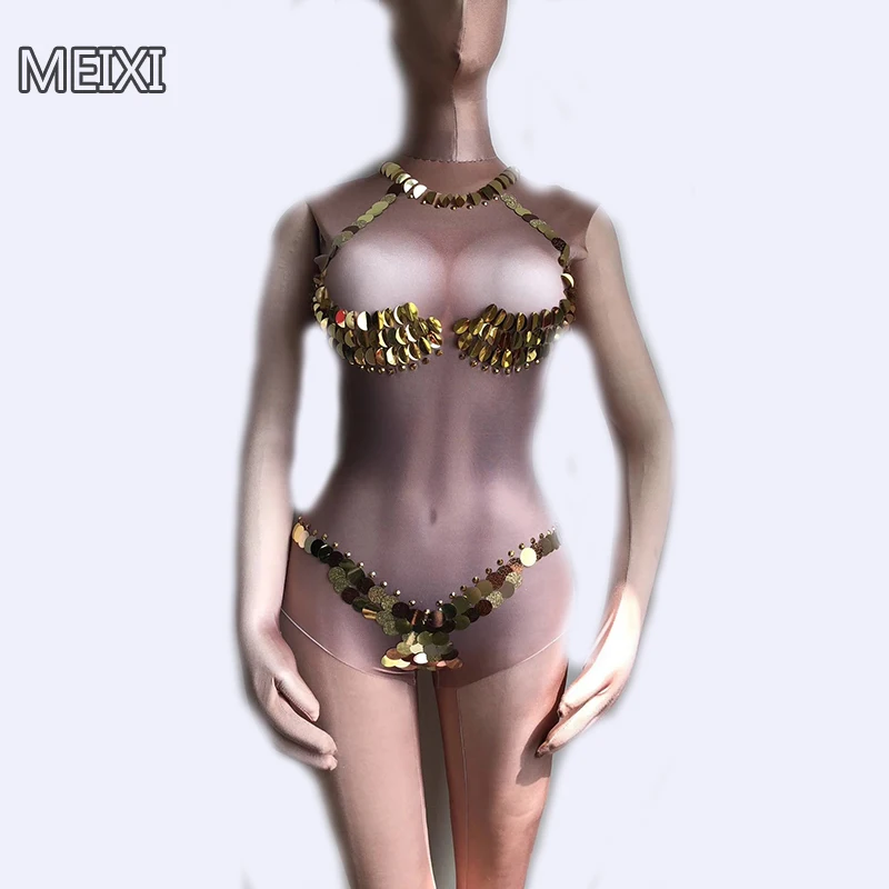Sexy and unique for the summer golden sequined night club concert singer and dancer costumes